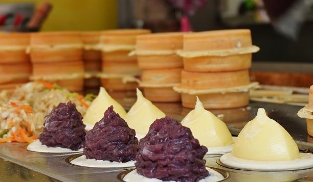 推薦店家:車輪餅大叔(地址:臺北市中正區忠孝東路二段150巷口)。價格區間:NT$25–NT$40。必點選單:奶油紅豆雙餡(奶油滑順,紅豆香濃)。