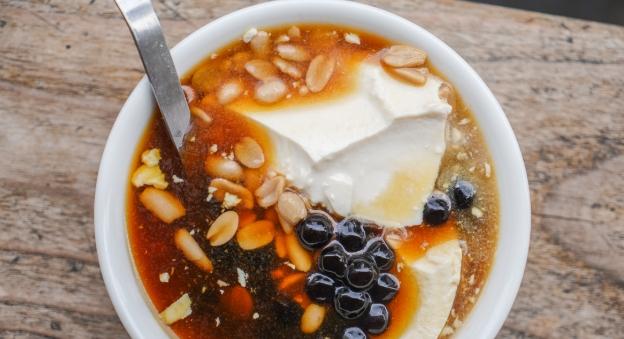 豆花綿密滑順,糖水清甜不膩,配料如花生、粉圓新鮮。(豆花容易變質,這家每日現做,品質穩定。)