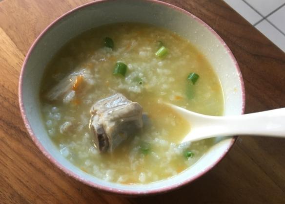 - 臺式排骨粥:重點在「排骨」和「湯頭」。米粒煮到開花軟爛,但還保留一點形狀(不是完全無顆粒)。湯汁濃鬱卻相對清爽(因為我們認真撈浮沫!),喝的是排骨與湯底熬出的鮮甜。香菇、蝦米、紅蔥頭的爆香是臺式經典風味標記。鹹味主要來自鹽,不會加太多額外醬料。