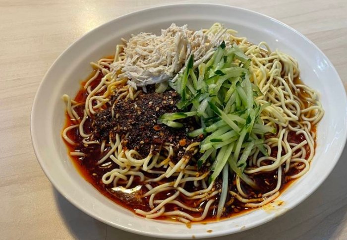 - 重慶涼麵上桌!吃的時候從底部往上充分拌勻,讓每根麵條都裹滿醬汁和配料。