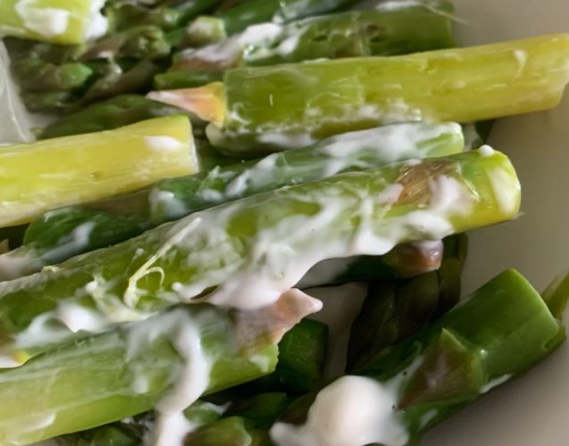 炎熱的天氣,或是吃膩了熱炒,這道冰涼爽口的蘆筍料理絕對是首選!檸檬的酸香搭配優格的濃鬱滑順,加上蘆筍的清脆,超級開胃解膩。我常一次多做點醬汁放冰箱,隨時燙個蘆筍就能快速上菜,當便當配菜也很棒。