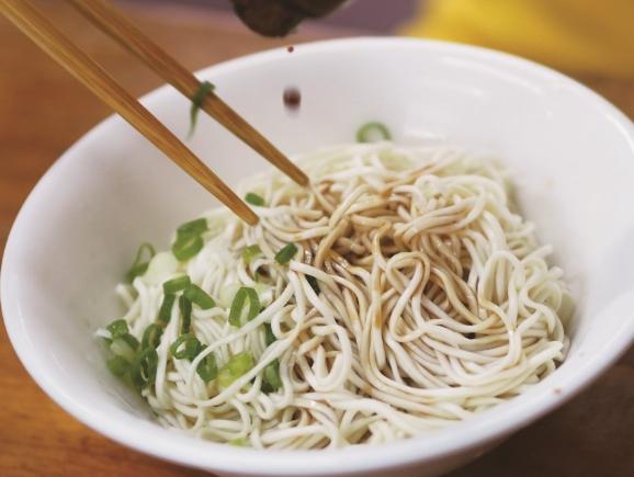 鍋內水要多(水寬),水滾後放入白麵條(鹼麵)。這種麵條通常煮的時間比一般麵短,包裝上會有建議時間(大概3-5分鐘),煮到麵心剛透、還帶點咬勁(Al Dente)就要立刻撈起,瀝乾水分。千萬別煮過頭,糊爛的麵條會毀了一碗好麵。撈起後可以過一下冷水(冰水更好),讓麵條更Q彈,也能防止餘溫讓麵條繼續軟化。