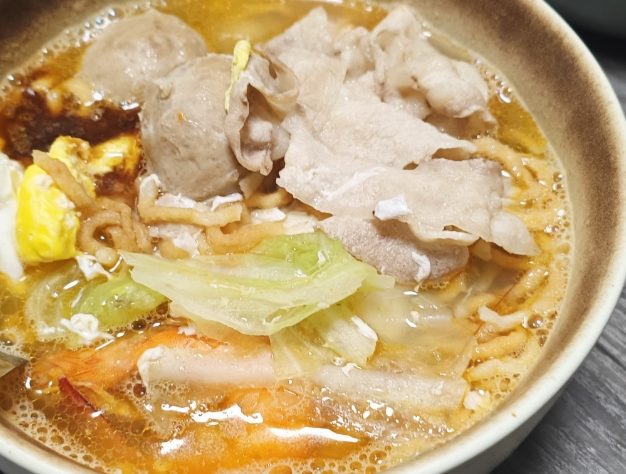 配料部分自由度很高,但經典組合不能亂改,少了就像鹹酥雞沒九層塔一樣失落!必備的有:新鮮蝦仁(泡點米酒去腥)、豬肉絲(用醬油、糖、太白粉抓醽更滑嫩)、打顆生蛋(半熟蛋黃裹著麵條才是王道!)、青菜(小白菜、茼蒿最對味)、炸物天婦羅(炸魚板、炸蝦卷隨你愛)。偷偷說:我曾突發奇想加過泡菜想變韓風,結果湯頭酸甜失衡,整鍋報廢...(手賤的代價)